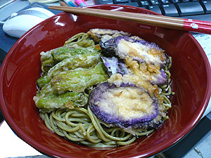 天ぷら抹茶ソバ。